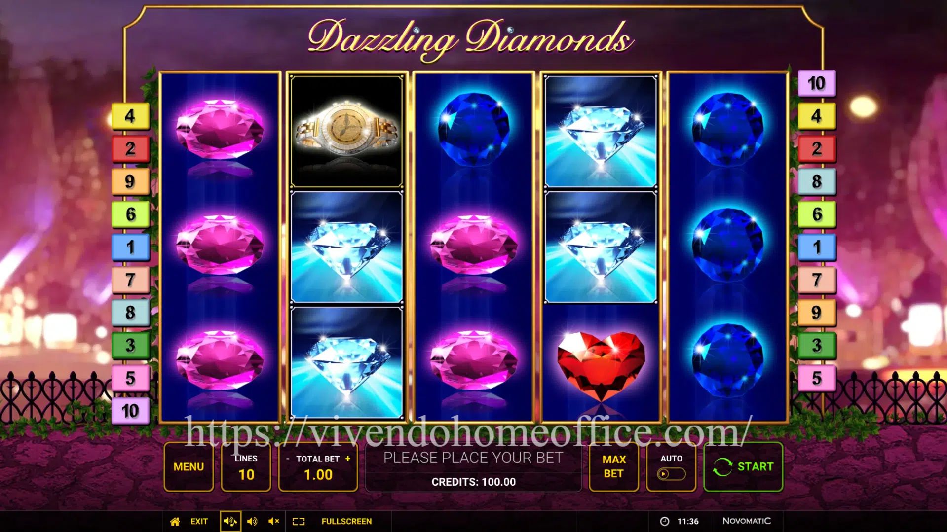 Dazzling Diamonds hadir dengan 5 gulungan dan 20 paylines, menjadikannya mudah dimainkan namun tetap menantang.